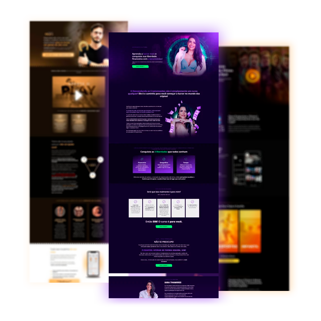 Páginas otimizadas para gerar conversões, focadas em capturar leads e impulsionar a venda de produtos ou serviços específicos. Essenciais para campanhas de marketing digital, são projetadas para atrair, engajar e motivar ações do público-alvo.